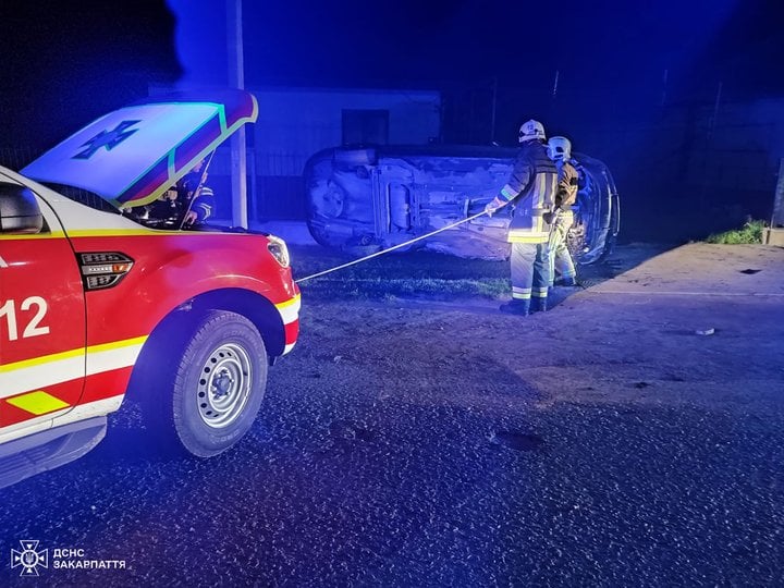 Як повідомили у Головному управлінні ДСНС України в Закарпатській області, водій не впорався з керуванням і автівка, з’їхавши з дороги, перекинулася набік.