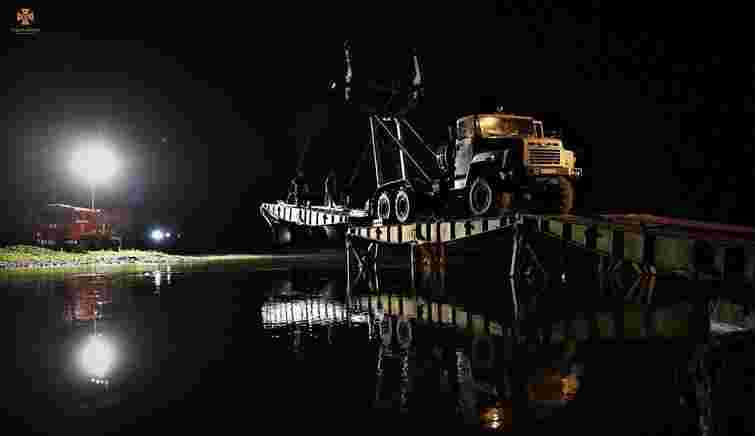 Після обвалу мосту на Закарпатті працівники ДСНС всього за ніч встановили через річку Тересва чотири секції важкого механізованого мосту ТММ-3М1 довжиною 40 м. Про це повідомляє прес-служба ДСНС.