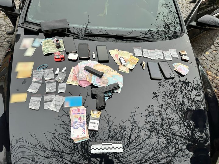 «У результаті обшуків слідчі вилучили партію розфасованого наркотовару на загальну суму майже 200 тисяч гривень, психостимулятори, арсенал зброї та боєприпасів, мобільні телефони, електронні ваги, три автомобілі та гроші», – інформують у поліції.