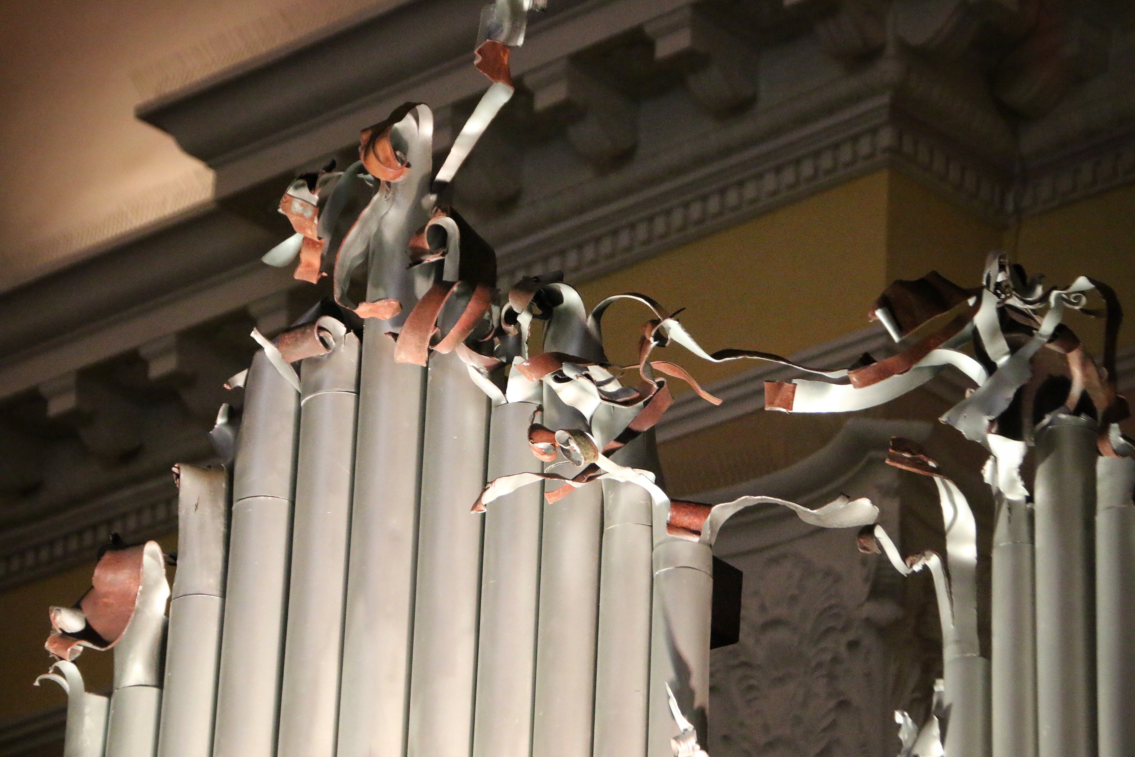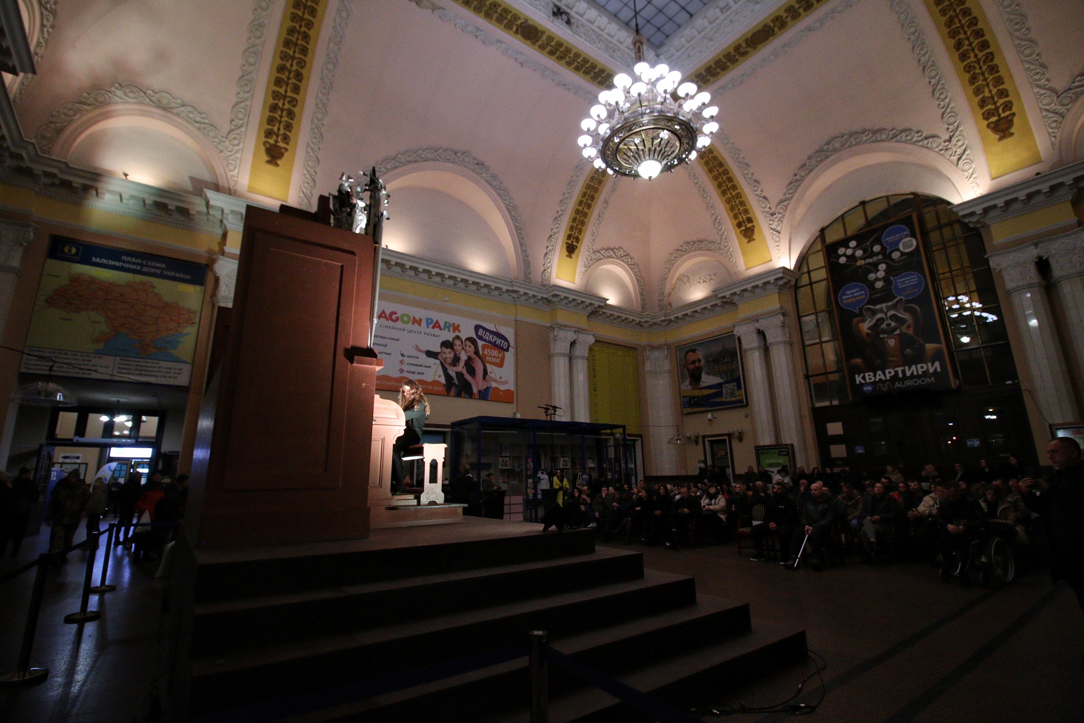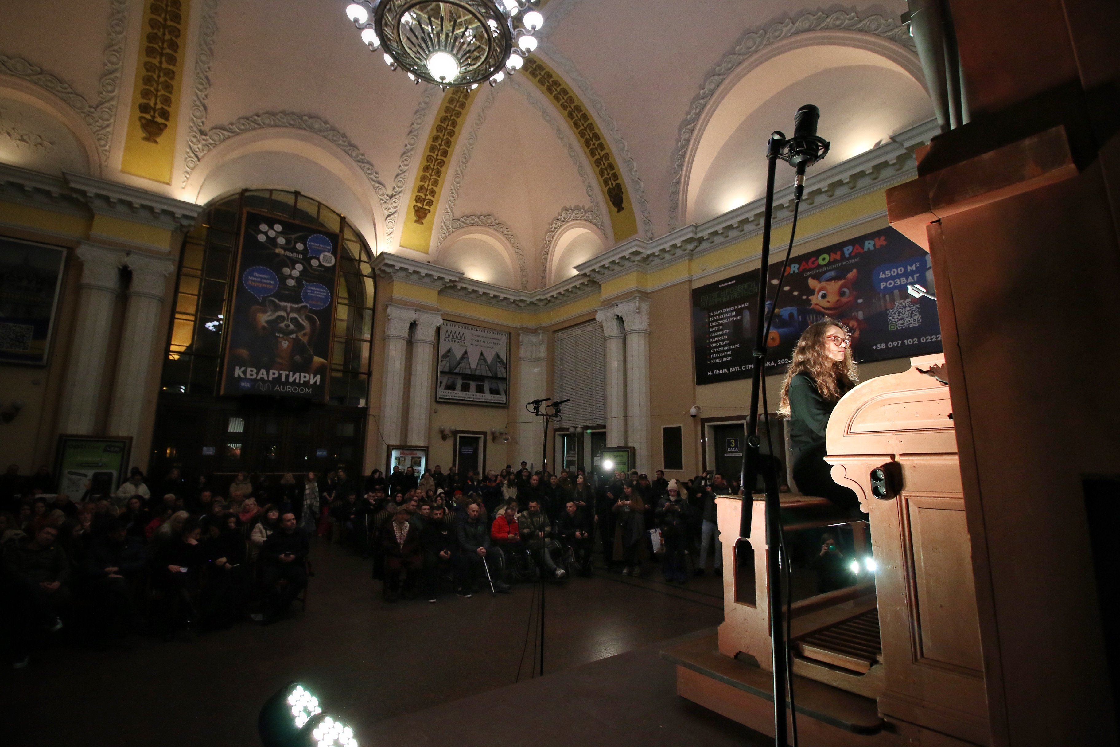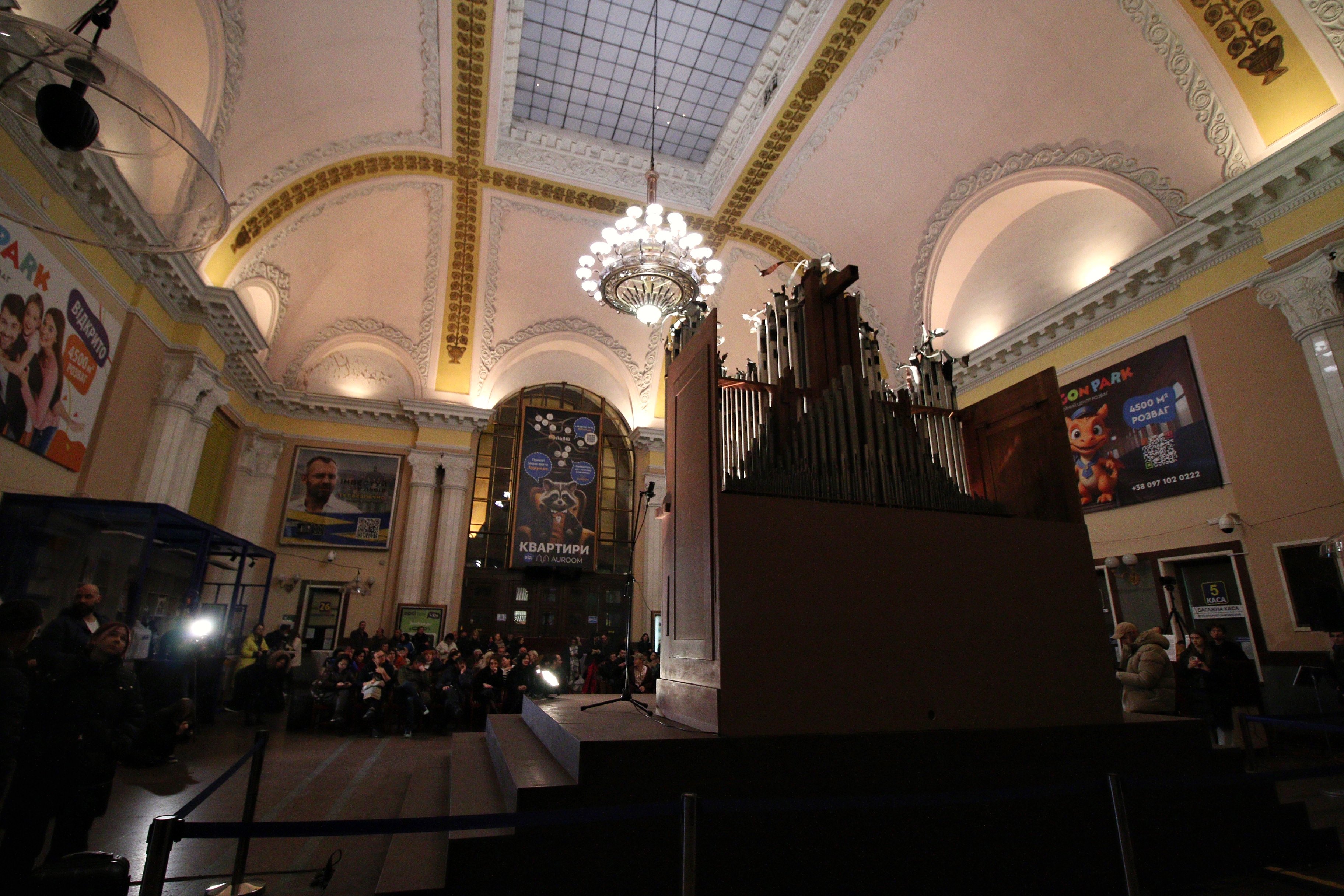 Перший органний концерт у квитковій залі вокзалу зіграла музикантка Олеся Борсук. На подію запросили військових та ветеранів, які проходять реабілітацію у Львові. Авторка інсталяції, художниця Жанна Кадирова, розповіла ZAXID.NET, що орган виготовили у XlX столітті.
