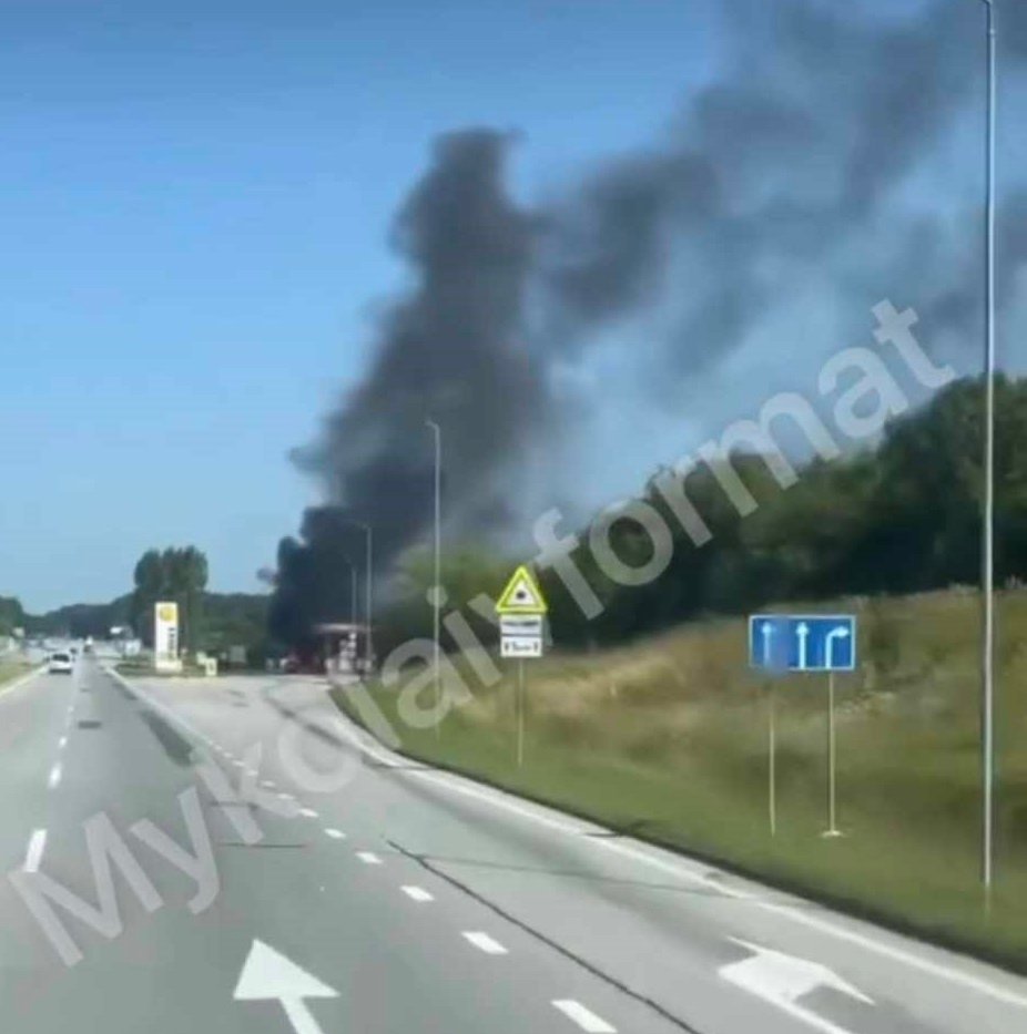У соцмережах поширюють кадри із місця пожежі, на яких видно густий чорний дим та автомобіль біля бензоколонки, який охоплений вогнем.