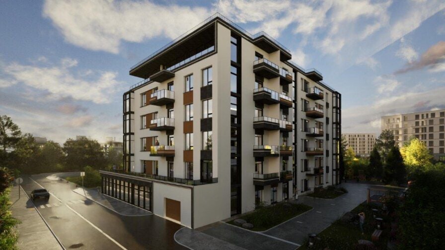 Перший об’єкт – це будівля з приміщеннями громадського призначення на перших двох поверхах, підземним паркінгом та житловими квартирами на верхніх поверхах на вул. Земельній, 4.