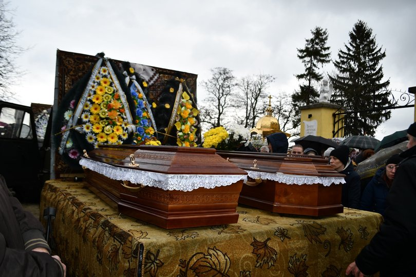 У суботу, 11 березня, у селі Велика Вільшаниця Золочівського району на Львівщині попрощалися із загиблими внаслідок ракетного удару мешканцями села. Похорон відбувся в один день, сусідів поховали на місцевому кладовищі.