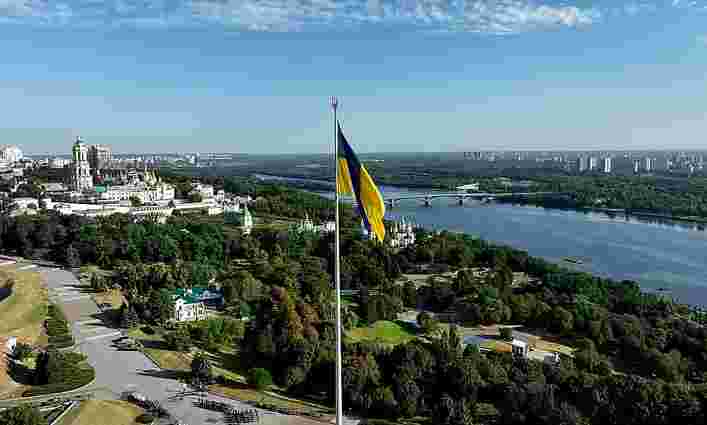 Над Києвом підняли прапор України зі словами та підписами військових