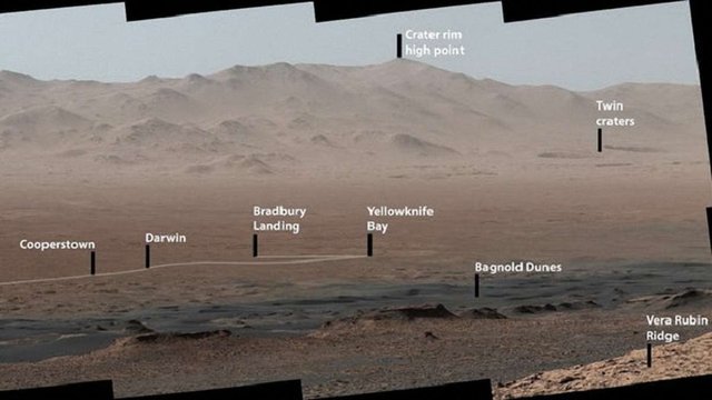 Знімки були зроблені з місцевості, яка називається хребет Віри Рубін. По суті, марсохід Curiosity показав на фото свій маршрут за останні п'ять років: від місця посадки до затоки Єллоунайф і аж до перетину дюн Багнолда. Кратер Гейла, який, за даними Curiosity, колись був гігантським озером з умовами, придатними для життя.