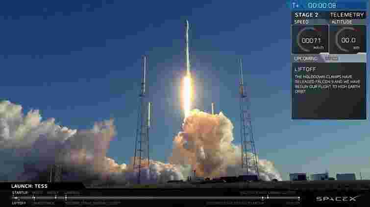 У ніч на четвер, 19 квітня американська компанія SpaceX запустила з мису Канаверал в американському штаті Флорида ракету-носій Falcon 9, щоб вивести на орбіту космічний телескоп NASA для пошуку потенційно придатних для життя планет. Про це інформує пре-служба NASA.