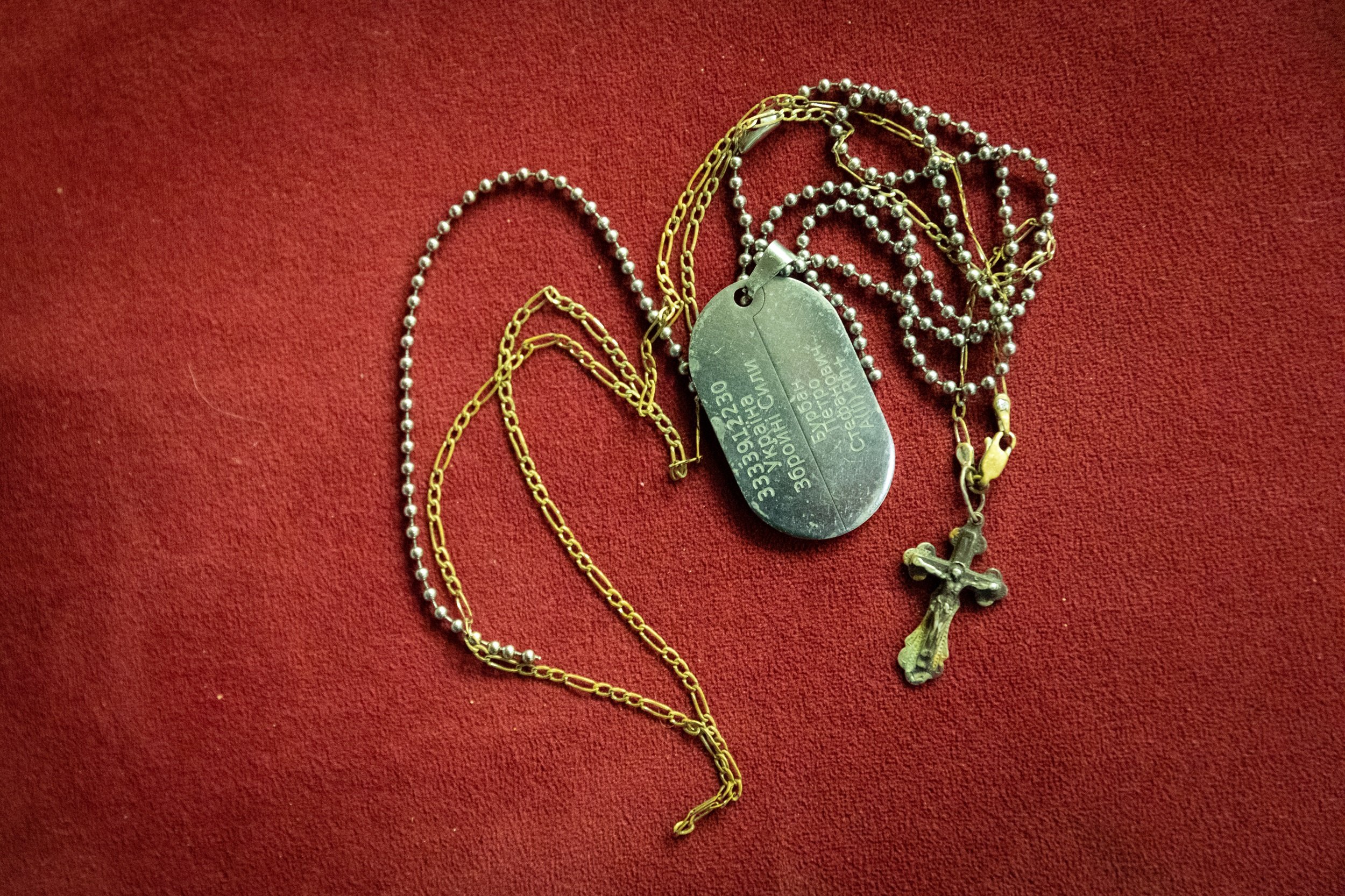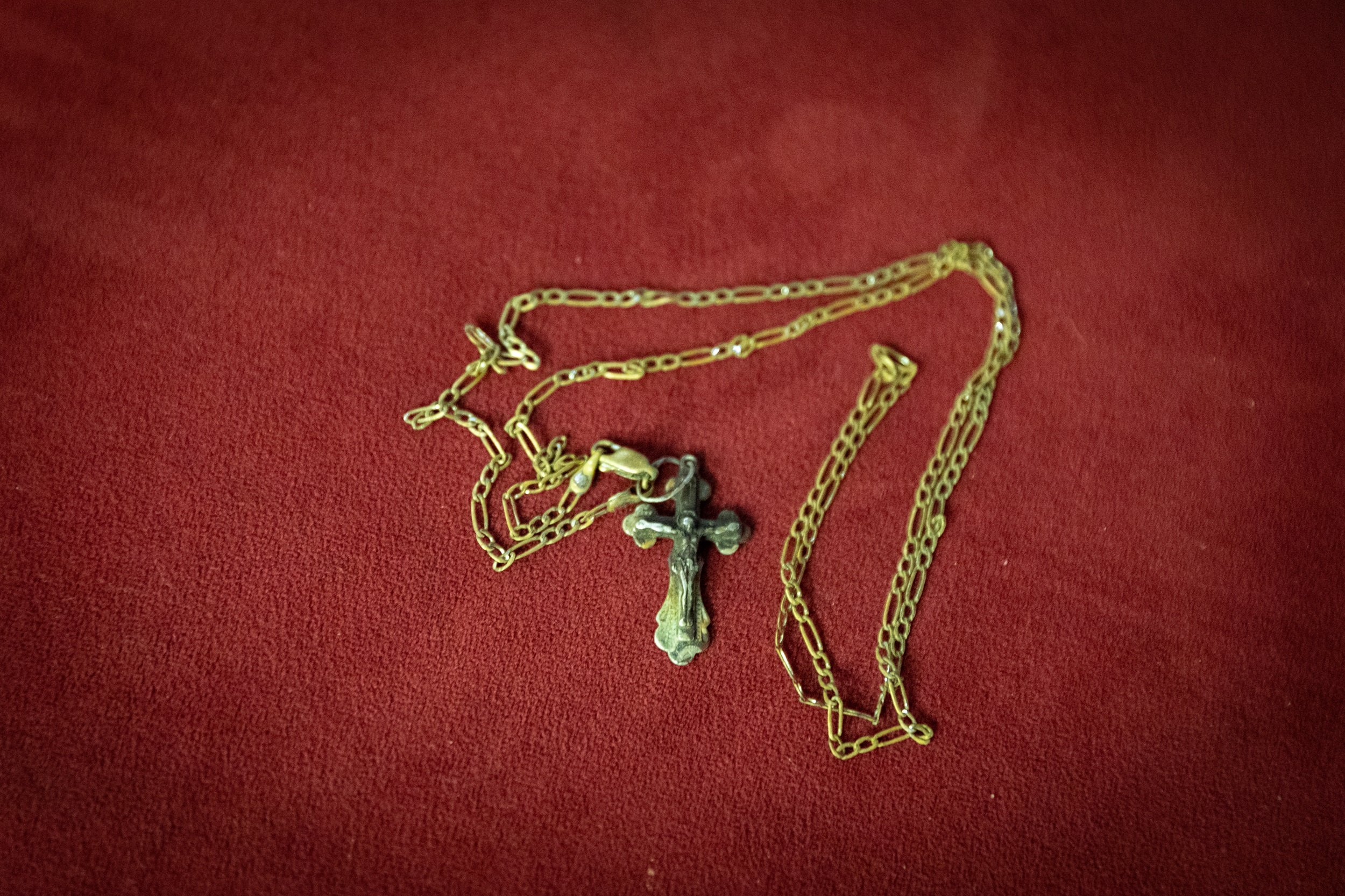 Наталя у пам’ять про чоловіка зберігає його речі – натільний хрест та медальйон