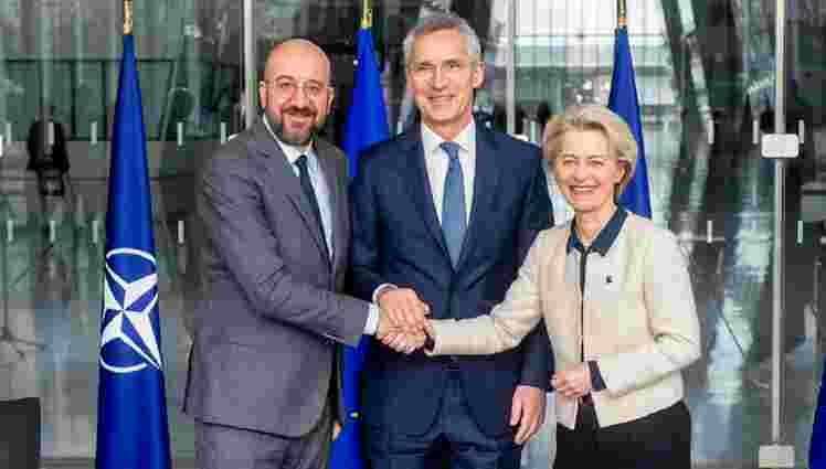 Генсек НАТО Єнс Столтенберг, президент Європейської Ради Шарль Мішель і голова Європейської комісії Урсула фон дер Ляєн підписали третю в історії організацій декларацію про співпрацю. Про це повідомили на спільній прес-коференції ЄС і НАТО.