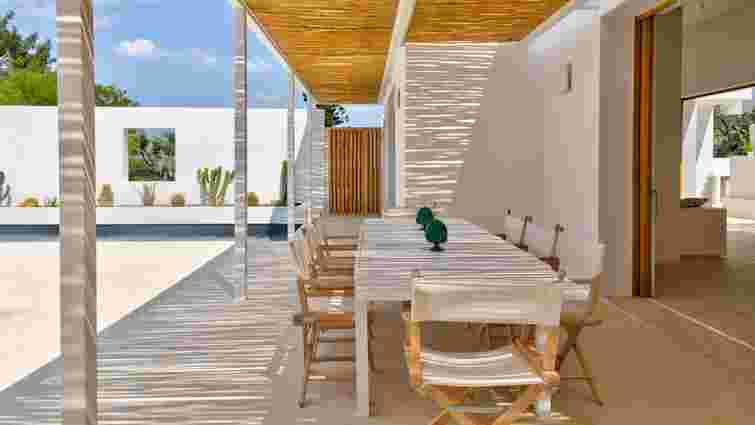 На даху цього одноповерхового будинку розташована теплиця з кактусами. Скляний дах нависає також над дерев’яною терасою, яка розташовуєть по периметру всього житла.