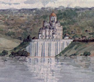 Підпірна стіна Видубицького монастиря у Києві (графічна реконструкція Г. Логвина, ВУЕ)