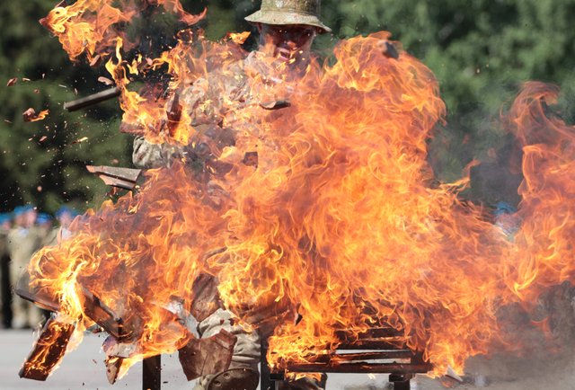 У ході показових виступів бійці демонстрували свої навички із рукопашного бою і володіння холодною зброєю. Найбільше глядачі були в захопленні, коли десантники розбивали руками, ногами чи головою порожні пляшки, черепицю, шматки шиферу.