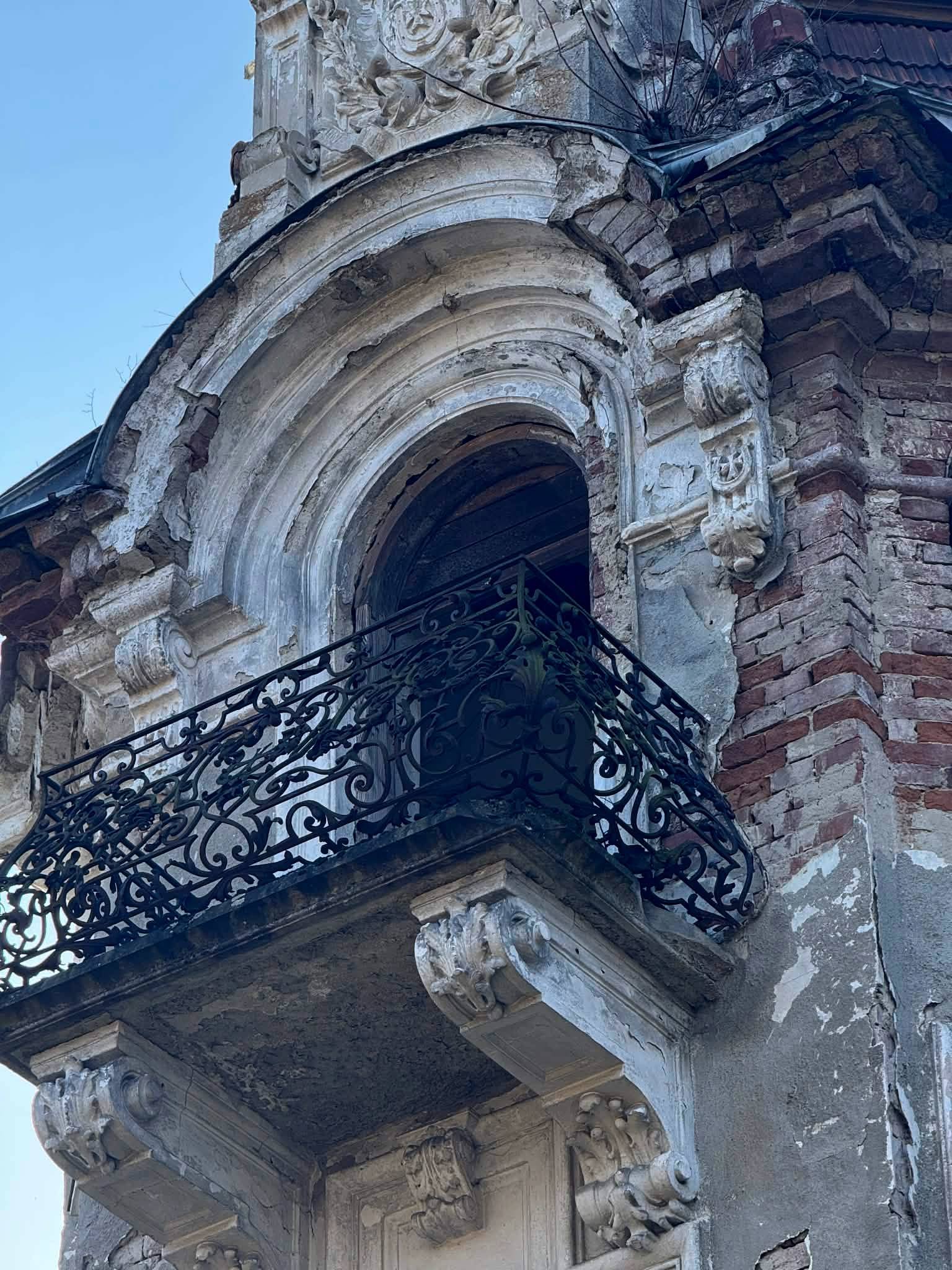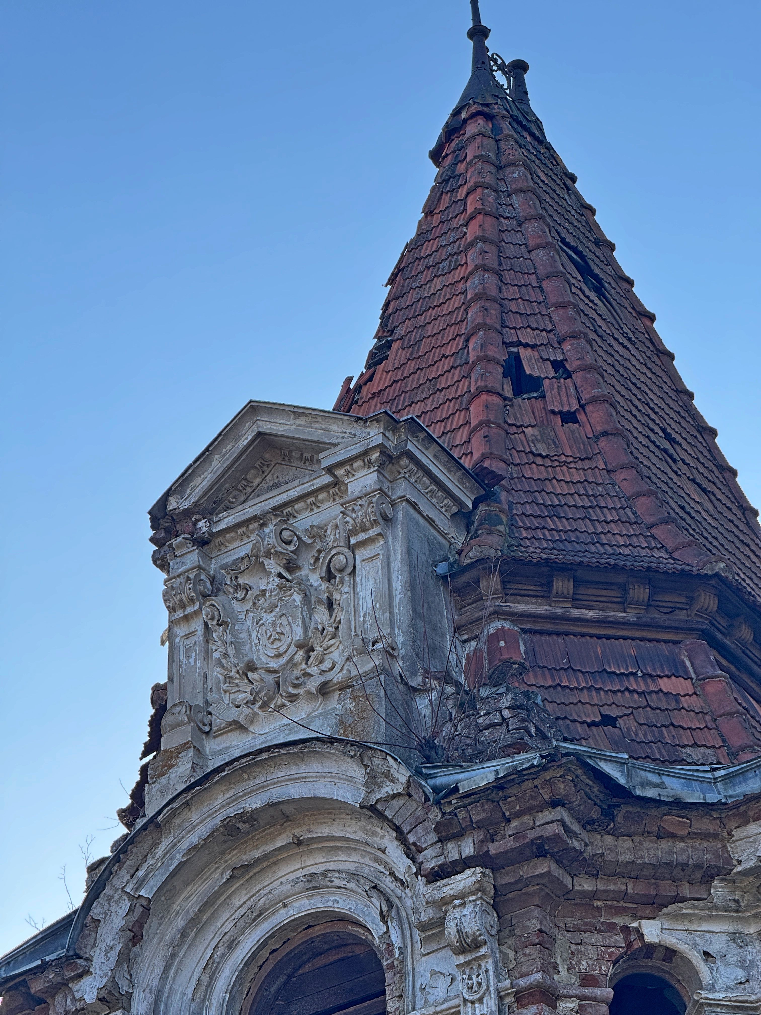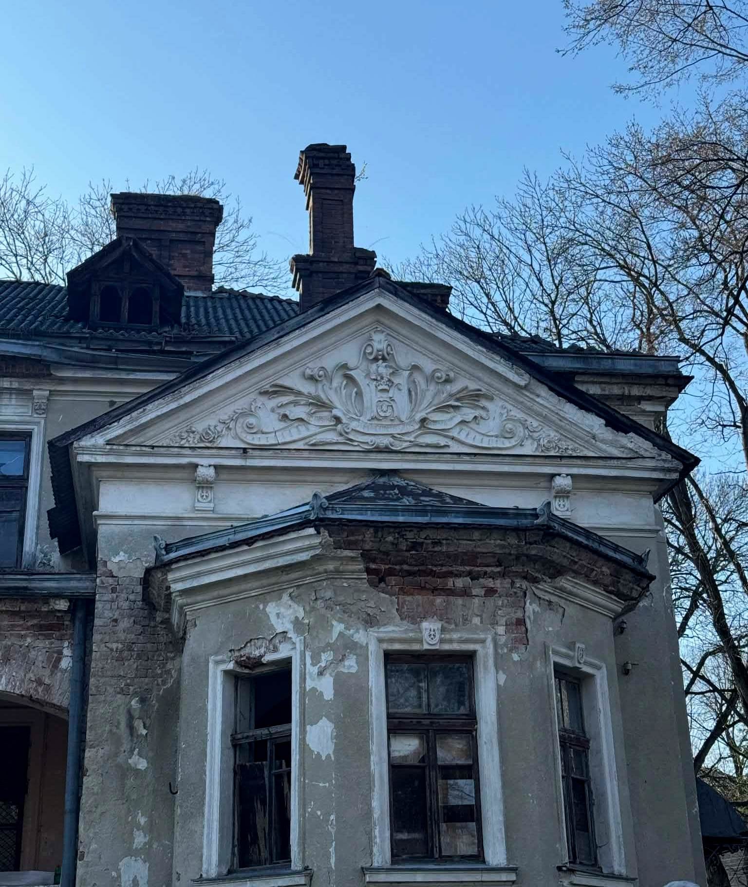 Палац має дах з черепиці і багату ліпнину на фасаді