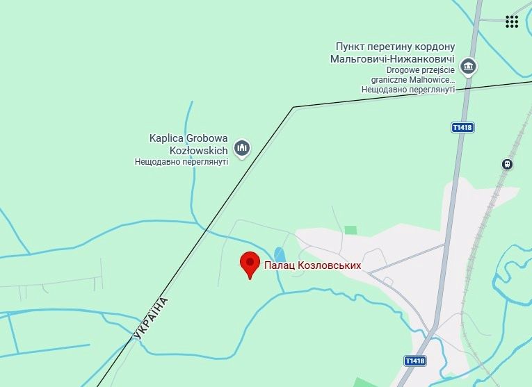 Палац і каплиця розташовані на відстані 500 м, але у складі різних держав