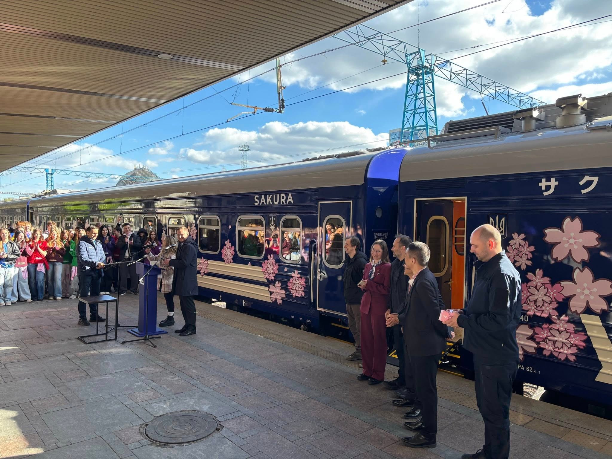 «12 вагонів “Сакури” отримали брендування пелюстками сакури, а пасажири поїзда матимуть доступ до онлайн-порталу про японську культуру, архітектуру та мистецтво. Також на борту представлені елементи японського меню, японські настільні ігри та японсько-українські культурні колаборації», – розповіли в «Укрзалізниці».