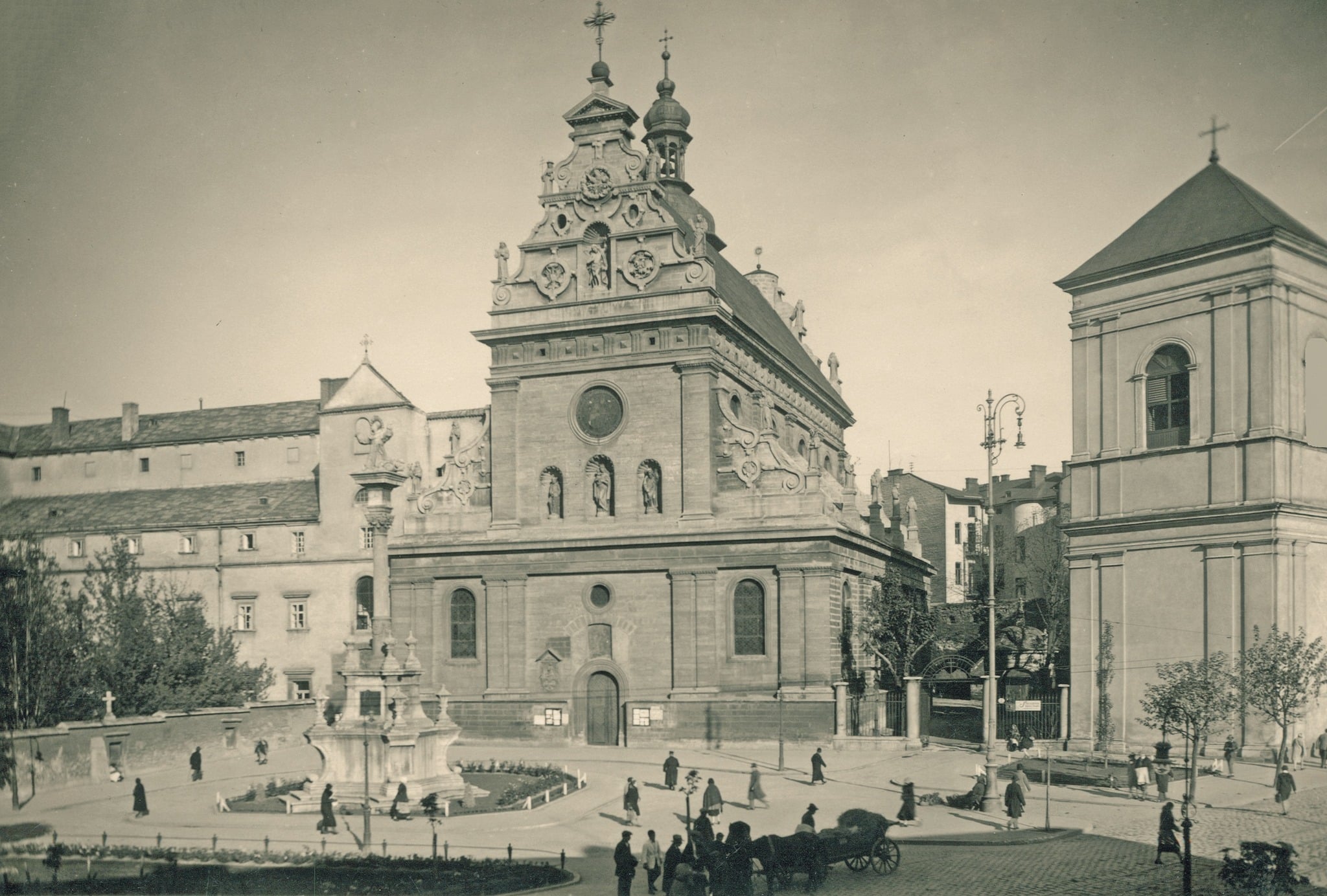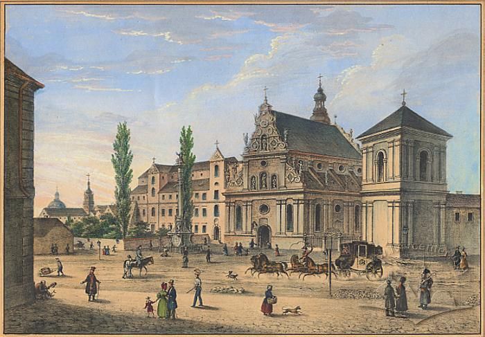 Вид на Бернардинську площу (тепер - Соборну) в 1795 році. Акварель Франциска Ковалишина 1902 року з колекції Львівського історичного музею