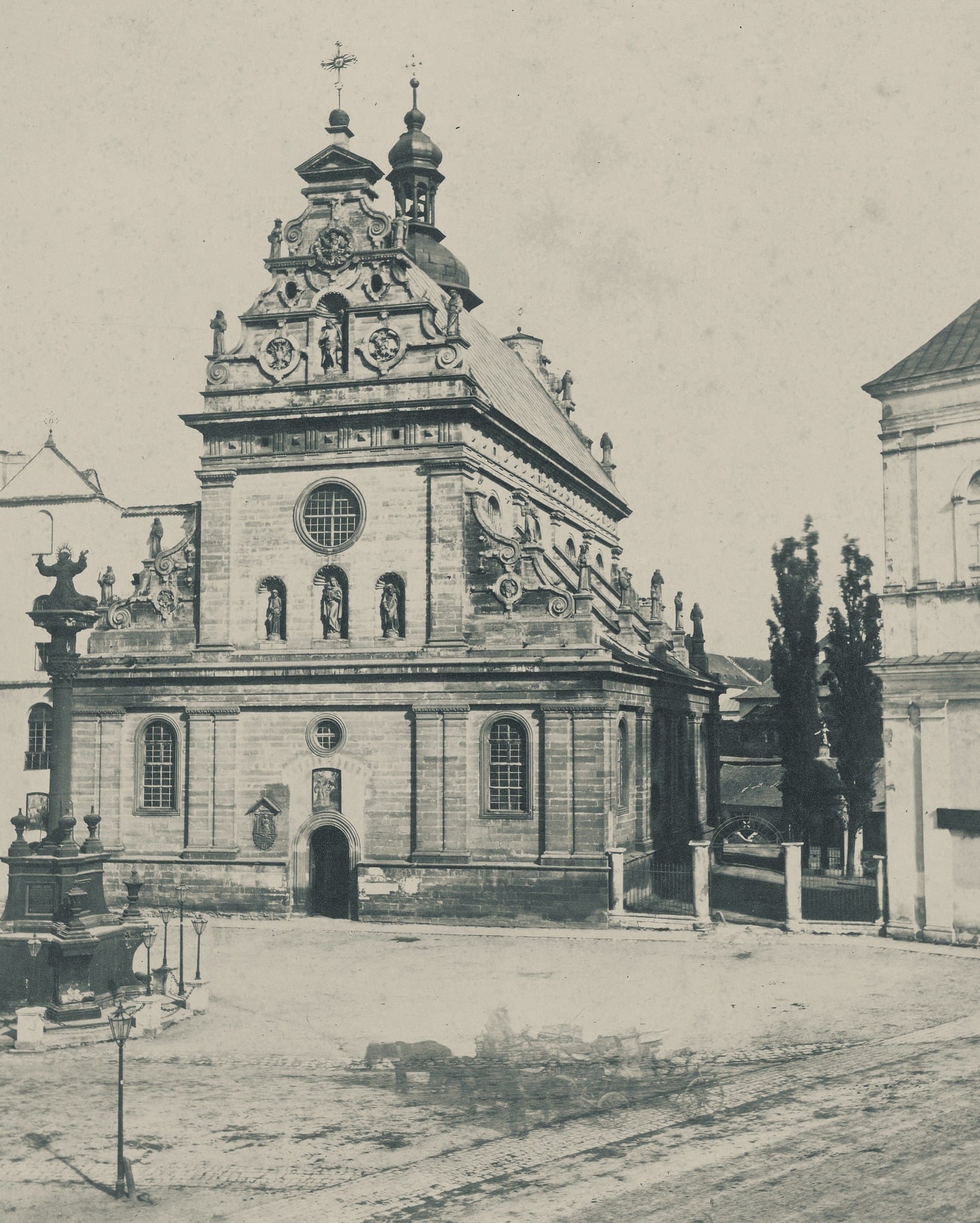 Ченці ордену бернардинів з’явилися у Львові в 1460 році. На місці, де розташована нинішня пам’ятка, вони звели спочатку дерев’яний храм. Це було в 1460–70-х роках.