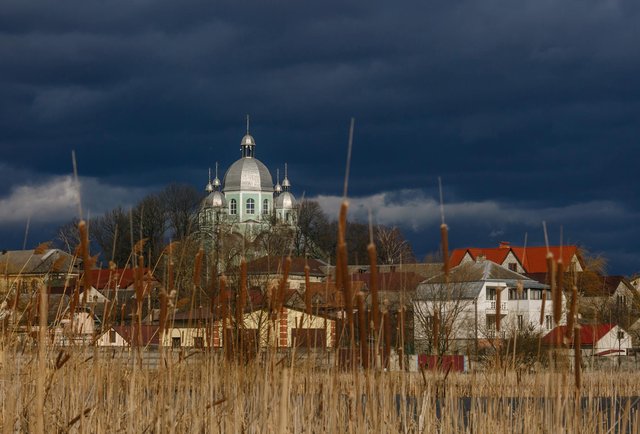 Недалеко від церкви піднімається сірий дим – біля місцевого ставка горить чагарник. Від вітру полум’я швидко перекидається на сухий очерет, згасає і загоряється від вітру.