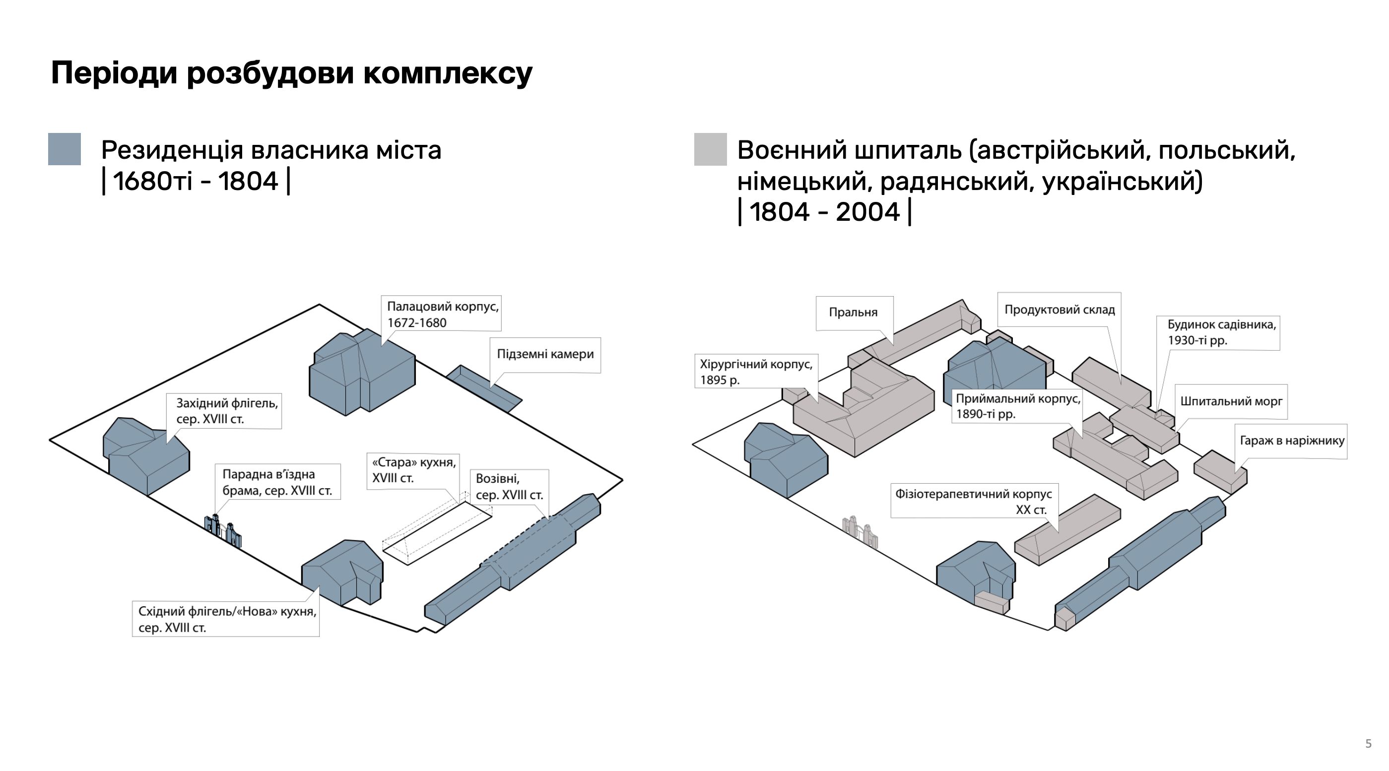 Будівлі, що збереглися з часів Потоцьких і шпиталю (графіка «Простору інноваційних креацій “Палац”»)