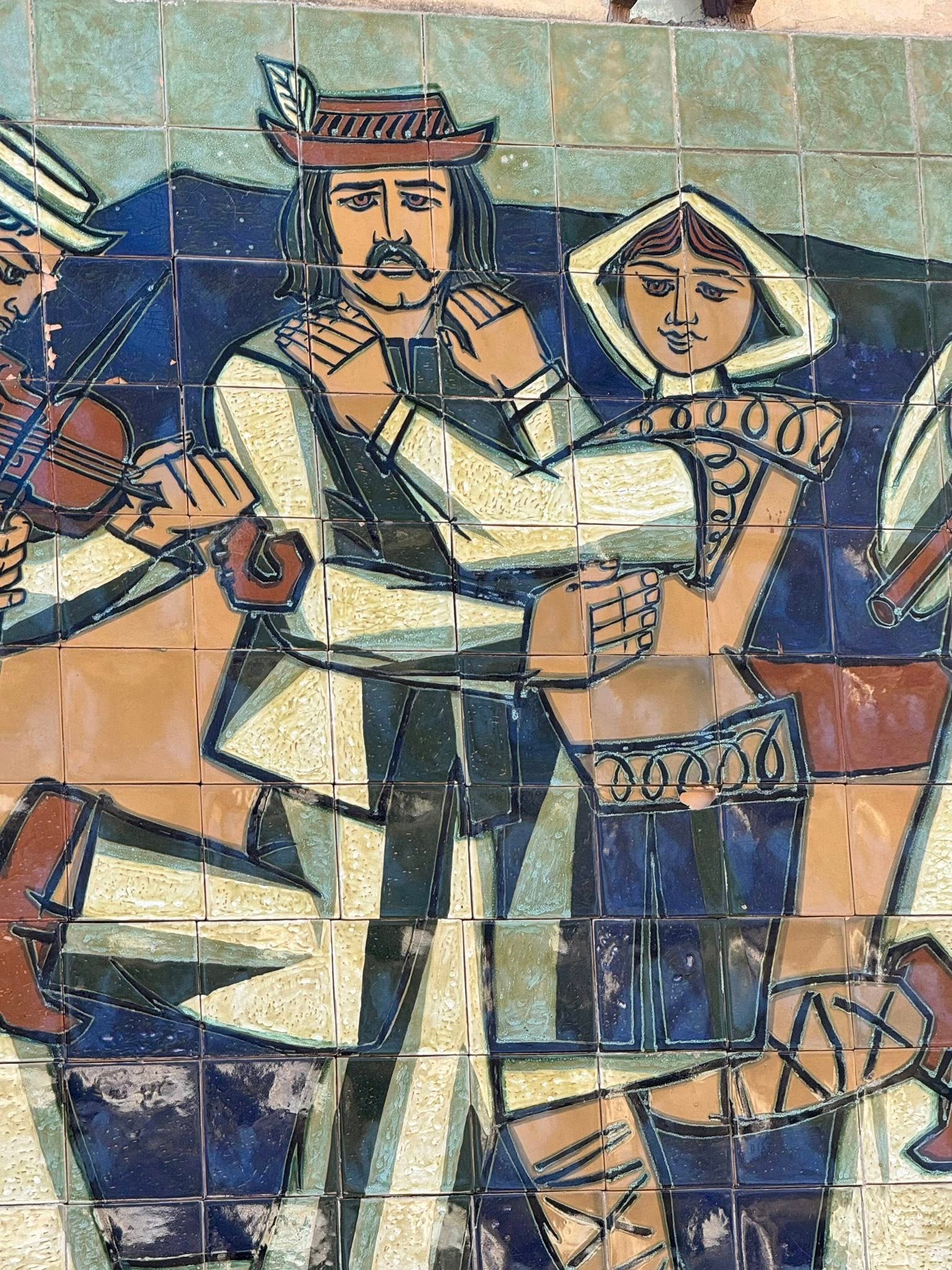 Як розповіли реставратори, панно виконане з глазурованих кахель у техніці високотемпературного випалу. На зображенні – алегорична сцена збору врожаю та виноробства в стилі радянського декоративного мистецтва 1970-х років. Воно складається з 624 глянцевих глазурованих керамічних кахель прямокутної форми розміром приблизно 22 × 21,7 см. Приблизна площа – понад 30 м².