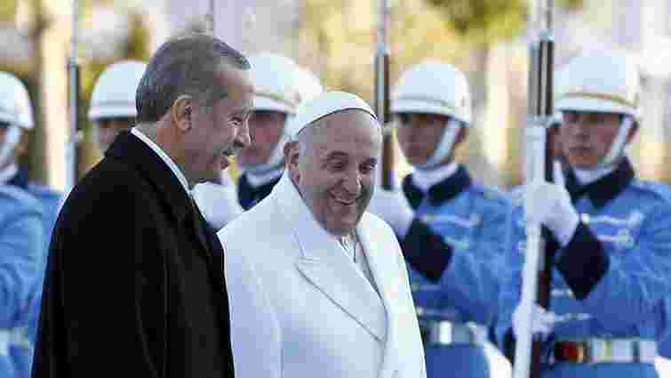 Папа Римський вперше зустрівся з президентом Туреччини Таїпом Ердоґаном. Зустріч відбулася в новому президентському палаці в Анкарі, який коштував державній скарбниці півмільярда євро. Про це повідомив сайт газети Bild.