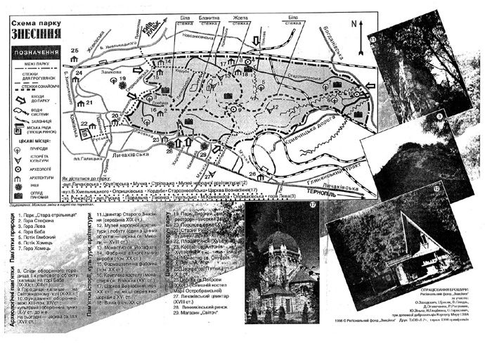 Парк «Знесіння» - зелена оаза нашого міста. Його місцезнаходження згрубша можна окреслити такими вулицями: на півдні – Личаківською та Миколи Лисенка, із заходу - Максима Кривоноса й Опришківською, на півночі – Новознесенською, а зі сходу – Богданівською і дорогою на Кривчиці. Околиці парку ближче до центру позначені горами Льва та Високого Замку, а закінчуються його пагорби горою Хомець, назву якої варто запам’ятати, адже вона стосується вірогідної теорії щодо першої писемної згадки про Львів. «Знесіння» - це 312га зеленої зони, 159 з яких – ландшафтний парк або заповідна зона. У підніжжі гори Лева, яку часто називають Лисою або Пісковою, археологами було знайдено відклади ще періоду мезозою», - почав розповідь Олег Заячківський. Щоб структурувати науковий матеріал, пан Олег виділив три важливі періоди в історії парку: давній дохристиянський, християнство і Середньовіччя, XIX - початок ХХ століття.