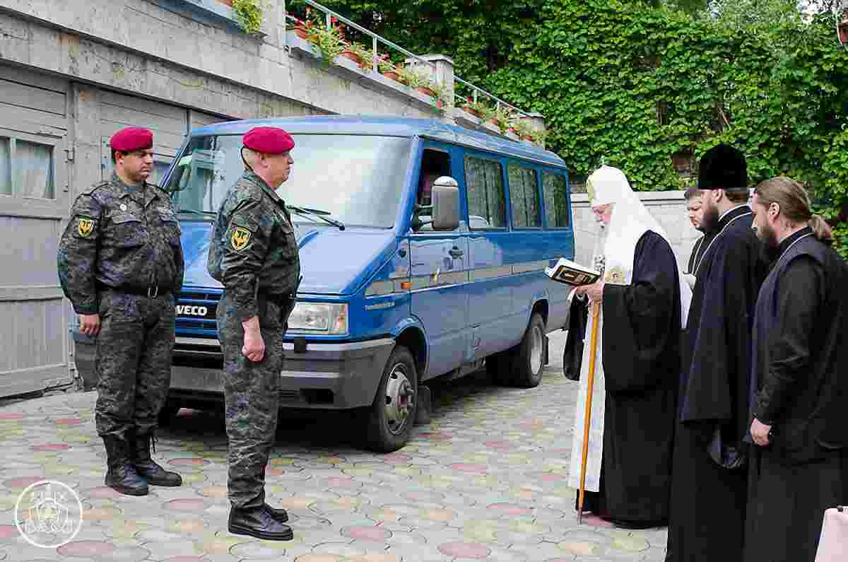 Як повідомили у прес-центрі Київської Патріархії, Патріарх Філарет передав мікроавтобус Другому батальйону Національної гвардії, який відправляється на Донбас. Патріарх також благословив батальйон на відправлення на Донбас.