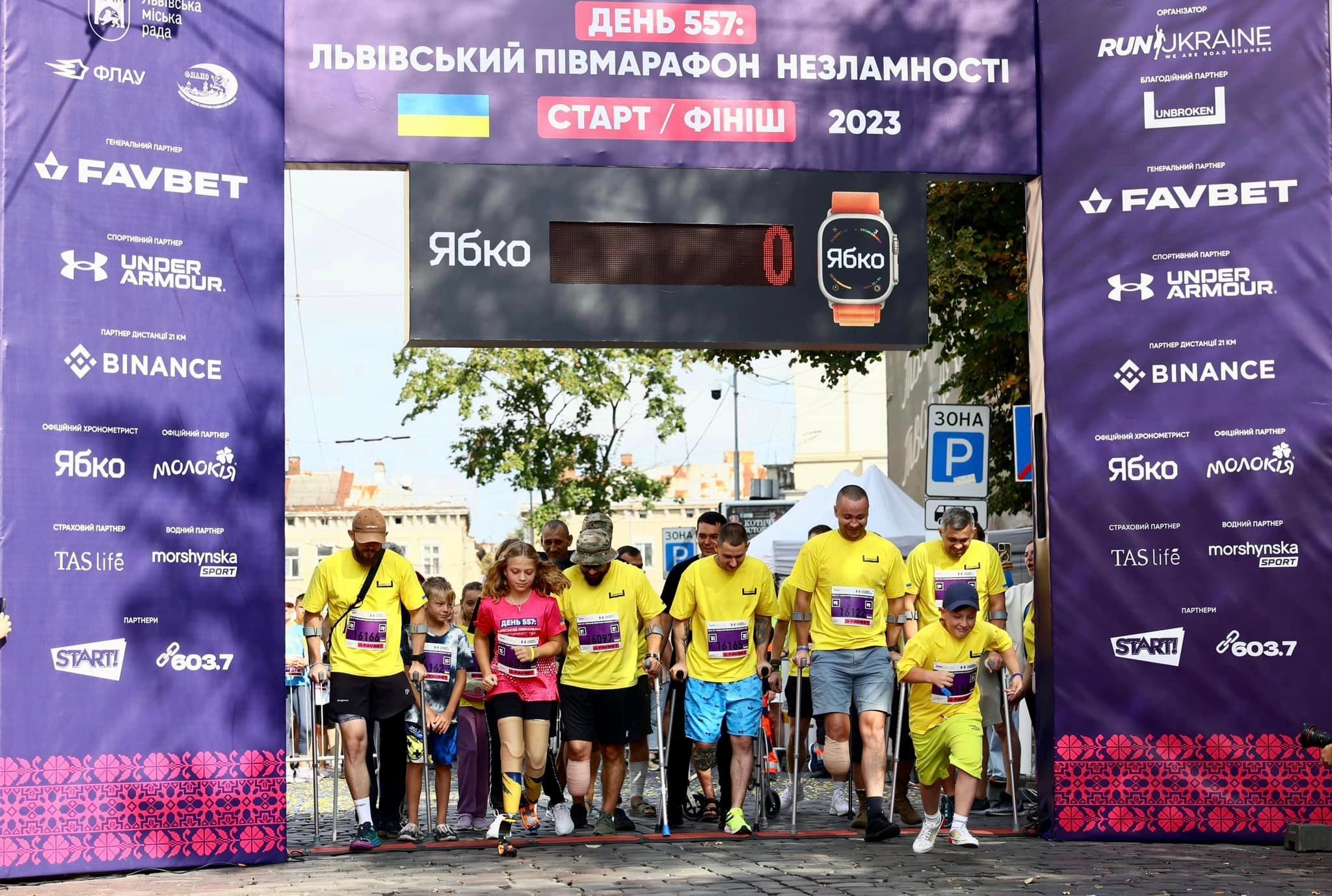У неділю, 3 вересня, у Львові відбувся сьомий півмарафон. Учасники подолали дистанції 21, 5 та 1,6 км. До забігу долучилися українські захисники, які зараз лікуються у центрі «Незламні», а також 12-річна Яна Степаненко, яка нещодавно повернулася зі США після протезування. Вони долали «Милю незламності». Цього року півмарафон – благодійний. Кошти передадуть на розвиток центру реабілітації Unbroken Ukraine.