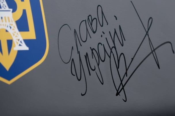 На ракеті французького виробництва Зеленський написав «Слава Україні!» та поставив свій підпис.