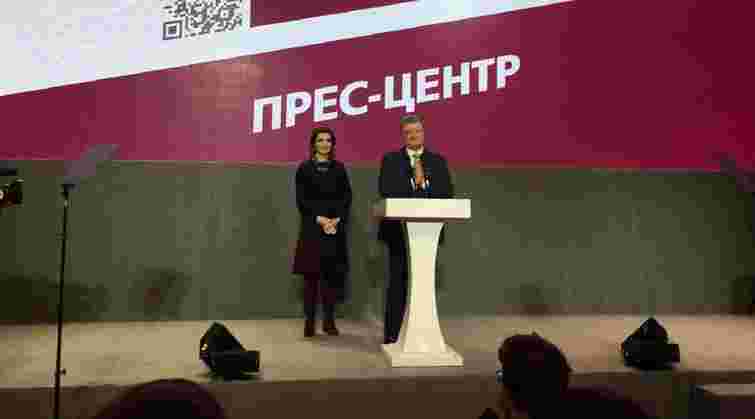 Під час виступу у своєму передвиборчому штабі Петро Порошенко подякував виборцям та членам своєї команди за підтримку. Порошенка в залі зустріли довгими оплесками.