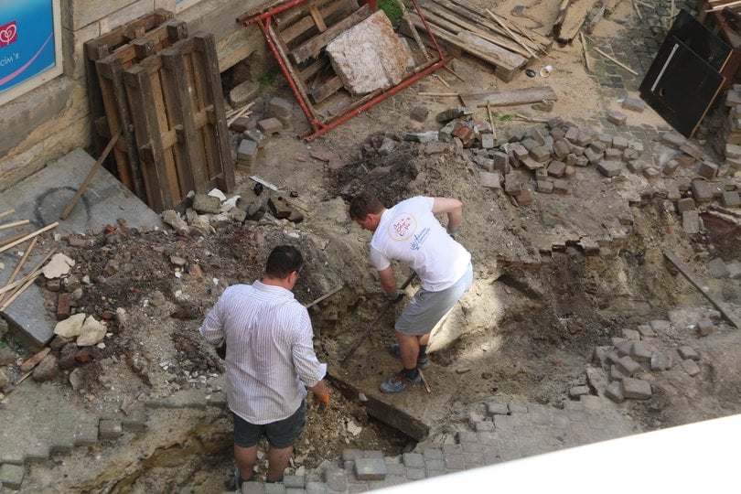 Під бруківкою у центрі Львова знайшли могильні плити давніх єврейських поховань