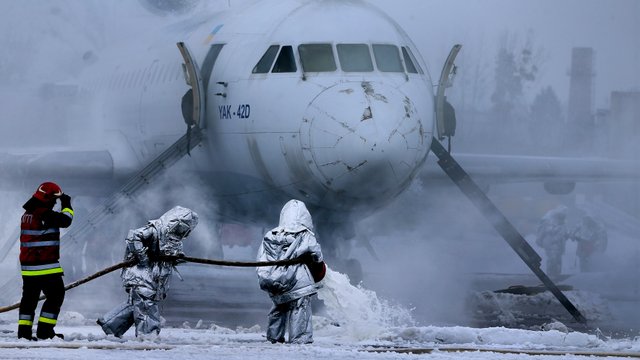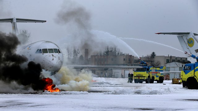 У Львові надзвичайники провели масштабні тренування, участь в яких взяли майже 150 рятувальників та 27 одиниць техніки. Вони мали загасити пожежу на борту літака Як-42, що зайнявся після аварійної посадки. На борті майже сотня пасажирів.
