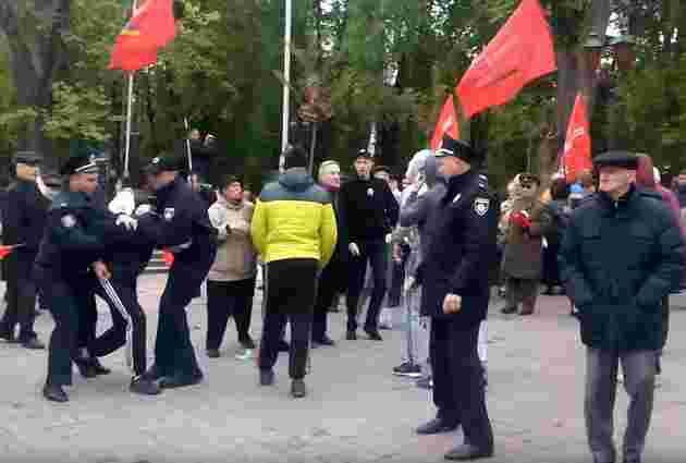 Як зазначається, близько 20 молодих людей, які не поділяли політичні погляди мітингувальників, намагалися перешкодити проведенню заходу і почали виривати з рук прапори. «Конфліктну ситуацію швидко припинили працівники поліції, які відтіснили з натовпу молодиків та змусили покинути територію проведення мітингу», — повідомили в поліції.