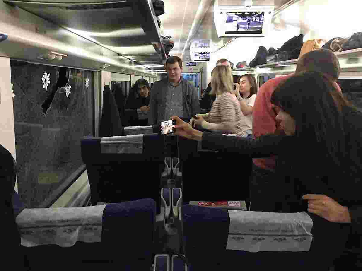 У четвер, 25 січня, у швидкісному потязі Інтерсіті+ Київ-Львів під час руху невідомі розбили вікно камінням. Про це повідомила співачка Руслана, яка їхала потягом до Львова. Розбивши скло, камінь впав їй на коліна.
