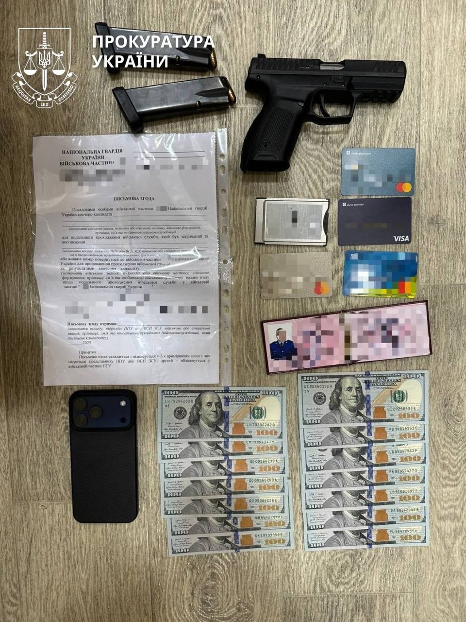Під час обшуків правоохоронці вилучили банківські картки, валюту, мобільні телефони, а також дві машини BMW 330D і BMW X5. Прокурор подав клопотання про арешт майна.