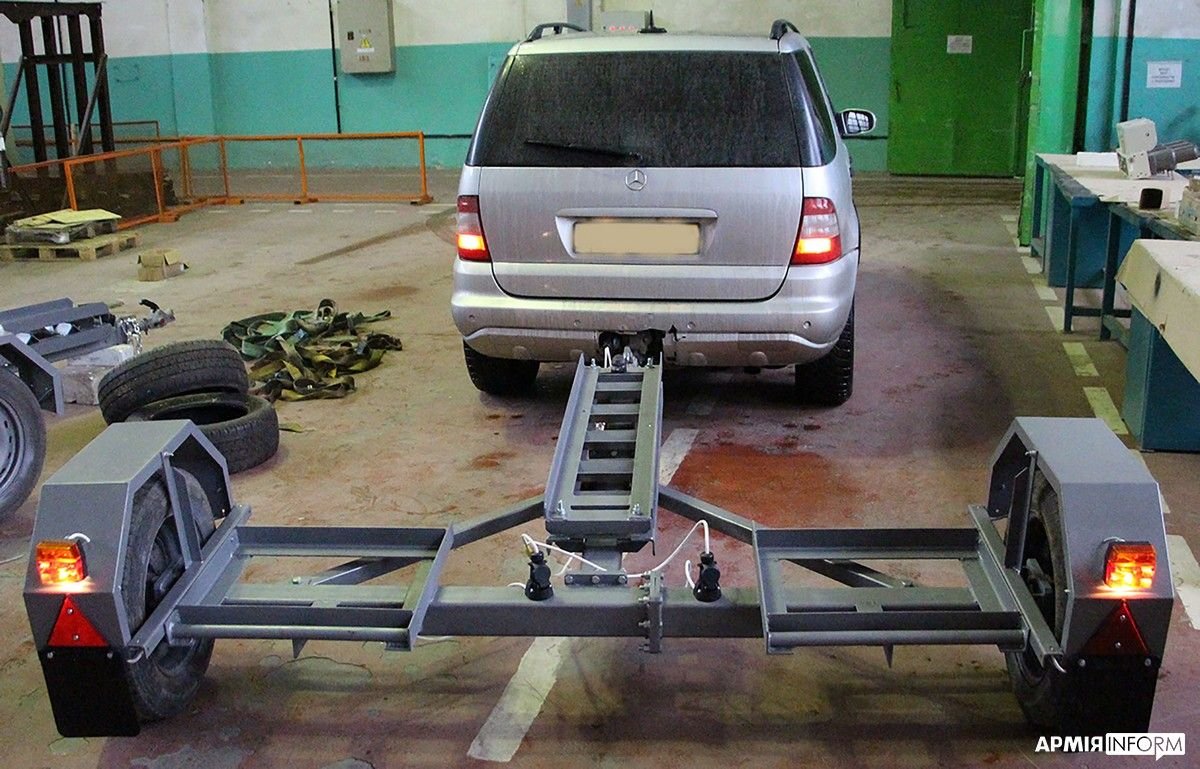 «Конструкція має два трапи, по яких заїздить авто, розетки підключення до поворотів, габаритних стоп-сигналів та додаткову розетку. Такий напівпричіп маневрений та зачіпляється на позашляховик або ж бус із фаркопом. Допустима вага транспортного засобу, що перевозиться – близько двох тонн. Транспортувати можна автомобілі шириною колісної бази більше 2 метрів», – йдеться у повідомленні.