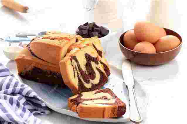 Випікайте кекс у круглій формі з отвором посередині або у звичайній прямокутній формі. Змастіть форму олією і по черзі виливайте світле та темне тісто, не змішуючи їх. Випікайте кекс у розігрітій до 180 градусів духовці приблизно 40 хвилин.