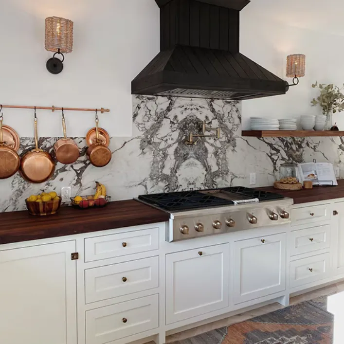 Також люди втомились від важкого щоденного прибирання і шукають способи полегшити собі побут. Тому в тренді в 2026 році будуть стіни та кухонні фартухи з цільного каменю або інженерних плит до стелі. Вони вписуються в сучасні інтер’єри і за ними легко доглядати.