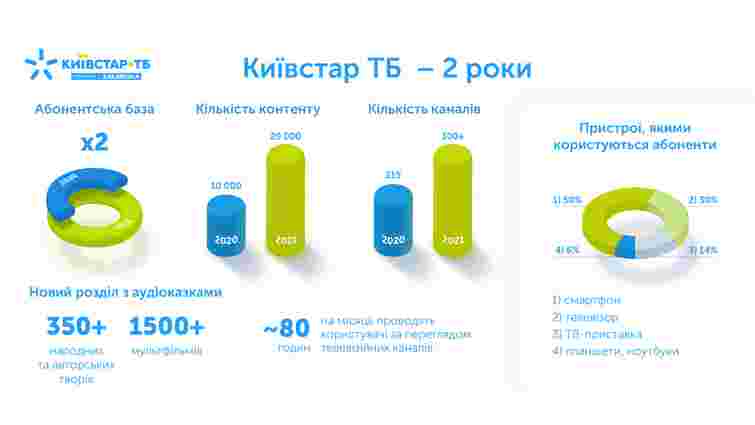 11 грудня платформа онлайн-телебачення Київстар ТБ святкує два роки з моменту запуску. У 2021 році кількість абонентів, що користуються послугою, збільшилась майже удвічі, в порівнянні з 2020 роком. Цьому сприяло збільшення обсягів відеобібліотеки, ексклюзивні та допрем'єрні покази, збільшення дитячого контенту.