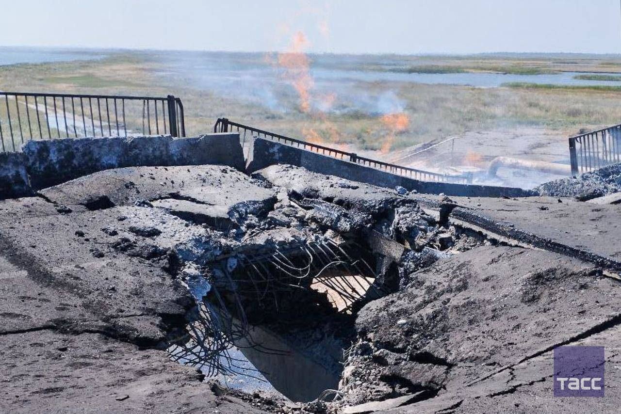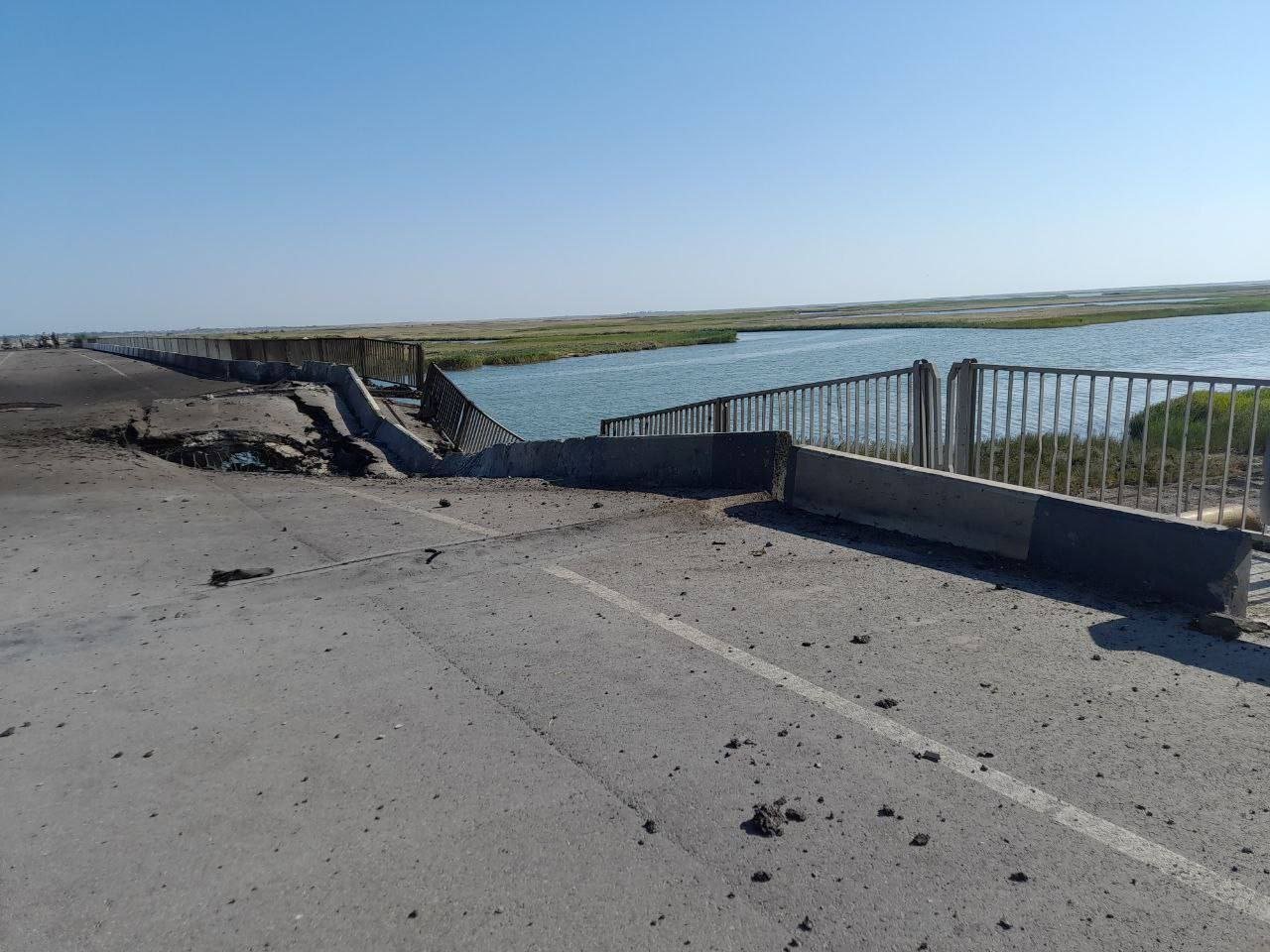По мосту в Генічеську, завдали ракетного удару. Про атаку заявили російські пропагандистські канали у неділю, 6 серпня. Водночас місцеві заявили, що чули вибухи поблизу Чонгарського мосту. Пізніше сили ЗСУ підтвердили інформацію про влучання по мостах.