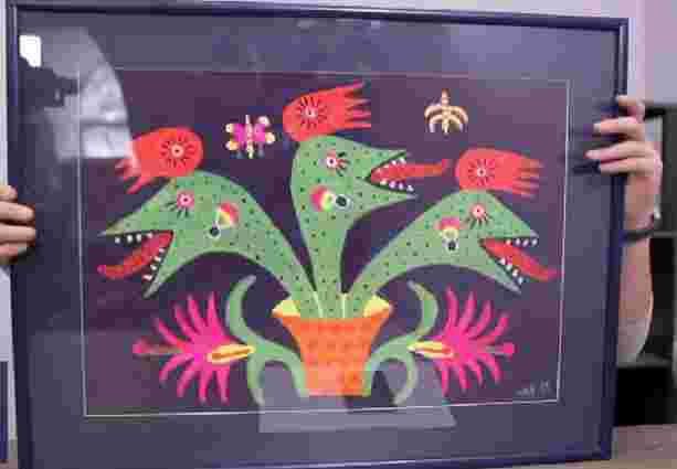 З’ясувалося, що це картина Марії Примаченко «Квіти виросли біля 4-го блоку», яку вона створила у 1990 році.