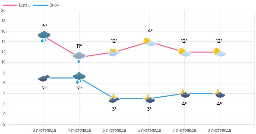 Погода на Львівщині 3-8 листопада (графіка Львівського гідрометеоцентру)