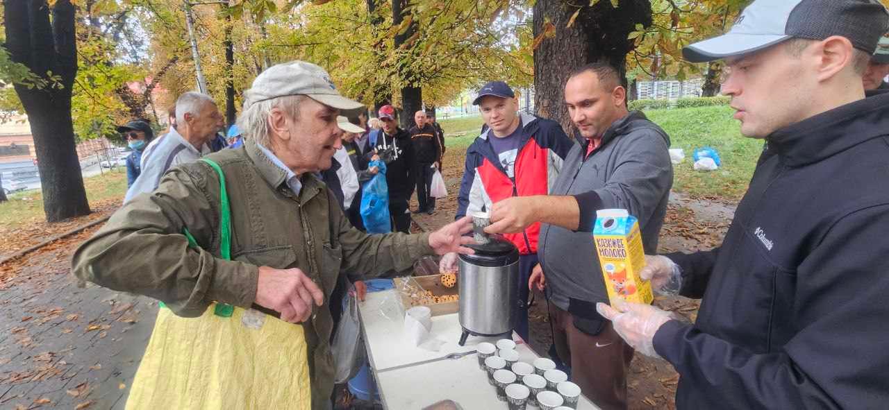 Наша благочинність розділяється на два напрямки. Ми годуємо безхатченків. Кожен тиждень готуємо близько 100 обідів та роздаємо їх щосуботи біля Порохової вежі. Там задіюються приблизно 12 представників нашої церкви, усі вони волонтери.