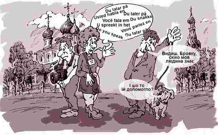 Ще від совка була нав’язана ситуація: навіщо, мовляв, знати інші мови, коли знаєш російську? І далі ще триває та абсурдна ситуація (яка, щоправда, вже, слава Богу, редукується поступово). Це у нашій «внутрішній Монголії», а у «зовнішній Монголії», тобто по закордонах тією «мовою міжнаціонального спілкування» є англійська. І також виникає ситуація: навіщо, мовляв, знати місцеву мову, коли ти знаєш англійську? У деяких країнах окрім місцевої мови другою офіційною є англійська. Декому, хто перебуває там довший час чи робить туди часті наїзди, вистачає там англійської. Бо навіщо знати місцеву мову, коли ти знаєш російську? Пардон, англійську.