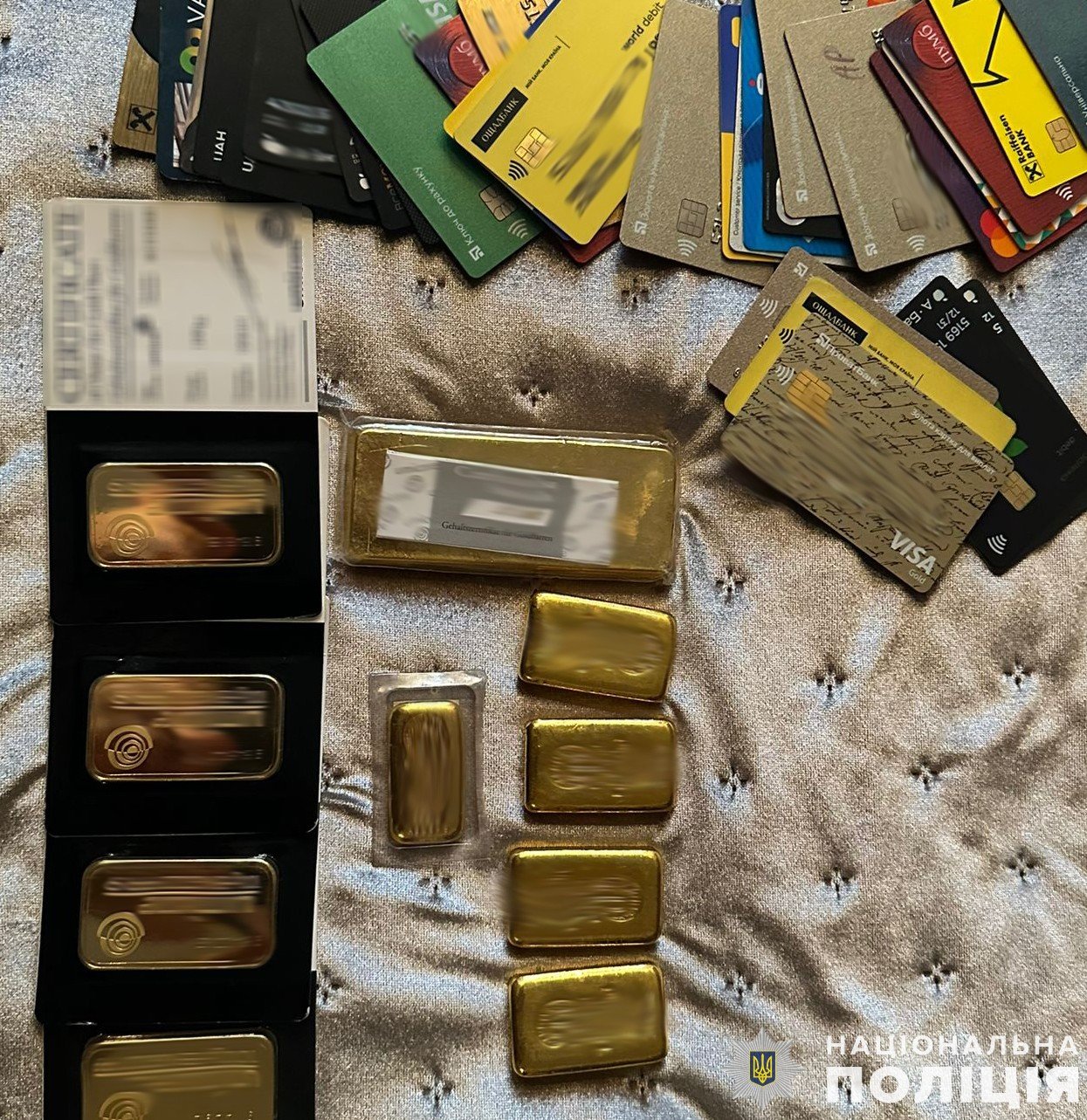 Під час обшуківвилучили підроблені печатки, бланки документів, золоті злитки та гроші