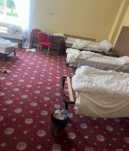 У всіх кімнатах, які відвідали члени моніторингової групи, був безлад. Як йдеться у звіті моніторингової групи, у кімнатах брудно, попри те, що діти перебувають у закладі 2-3 дні: зламані меблі, переповнені смітники; через надлишок сміття діти його складають по кутках приміщення. Через відсутність води діти віком 7-8 років змушені самі носити 19-літрові бутлі на поверхи кімнат.
