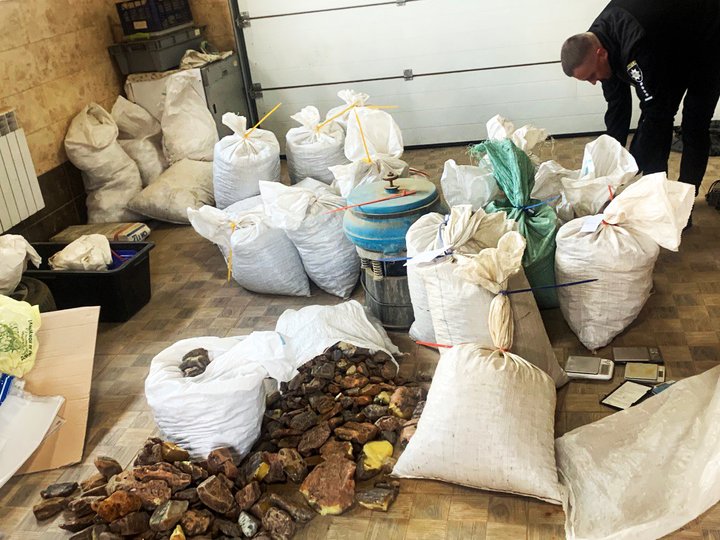 «Під час обшуку в господарстві 34-річного чоловіка поліцейські виявили в гаражному приміщенні 20 мішків, наповнених камінням бурштину крупної фракції загальною вагою 455 кілограмів. Один із камінців заважив 1 кг 200 гр. Його вартість може сягати 230 тисяч гривень, а сума вилученого загалом – майже семи мільйонів грн», – йдеться у повідомленні.
