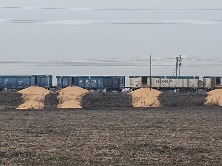 Зауважимо, що на опублікованих відео можна побачити, що зерно висипане із восьми вагонів.