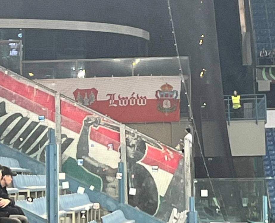 Під час матчу вболівальники також вивісили плакат про польський Львів