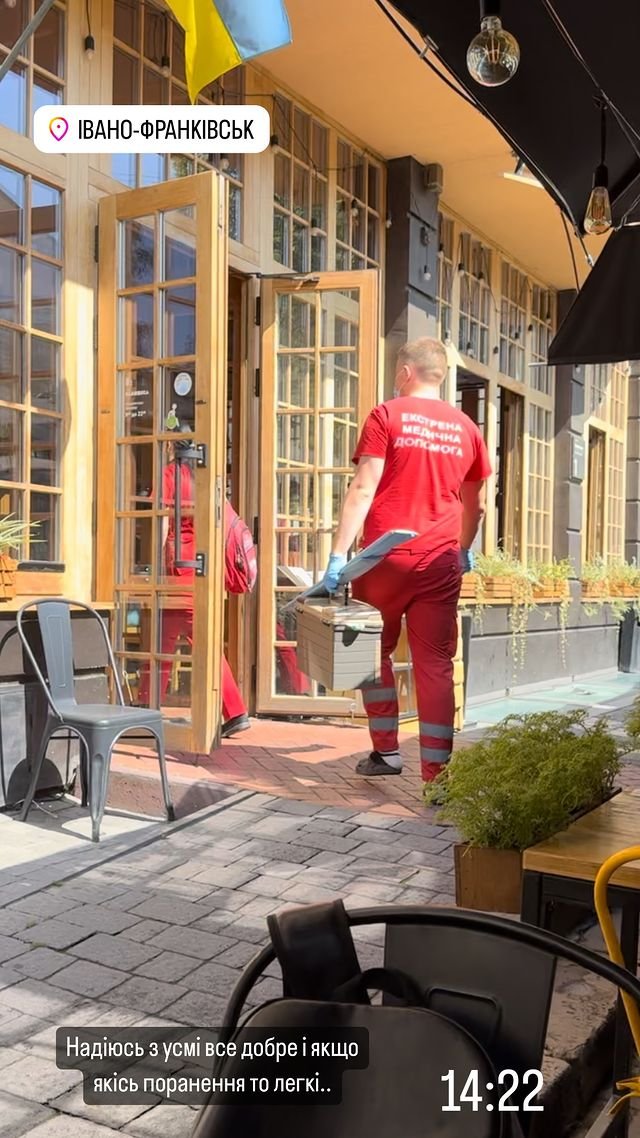 Водночас сайт новин «Інформатор» пише, що адміністратор піцерії Fabbrica викликав бригаду швидкої медичної допомоги для клієнтки закладу, яка поранила ногу унаслідок влучання. ZAXID.NET наразі не вдалось сконтактуватись із адміністрацією піцерії Fabbrica.