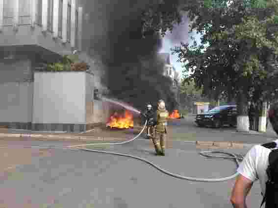 Між тим, начальник ГУ Нацполіції Києва Андрій Крищенко в ефірі телеканалу «112 Україна» повідомив, що, за даними очевидців, у будівлю кинули димову шашку. «Кваліфікація події - «Підпал» та «Умисне пошкодження майна», - зазначив Крищенко і додав, що до відділків поліції доправили 6 осіб, яких затримали на місці події. Наразі їх перевіряють на причетність до інциденту.